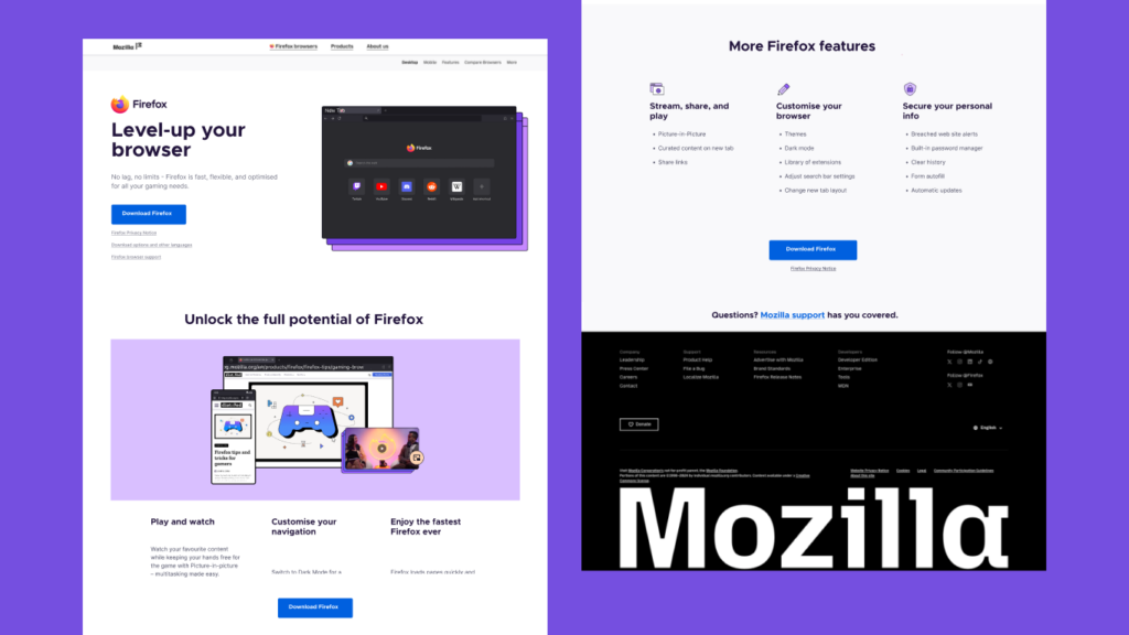The existing brand guidelines weren’t fully keeping up with how Firefox was evolving—both in product and marketing. While past campaigns successfully connected with users, those elements weren’t always reflected in the core brand system. Remote teams needed a common source of truth in to align and be consistent. At the same time, ensuring strong accessibility standards was essential to keeping Firefox’s communications inclusive.
